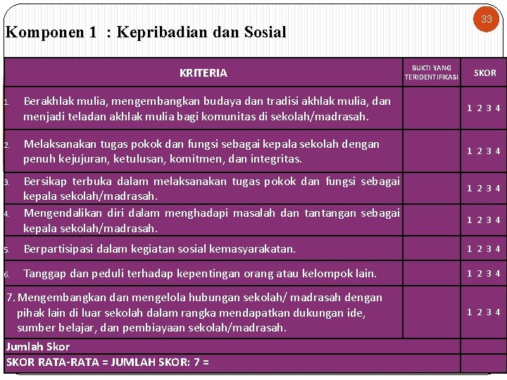Ada 6 komponen penilaian yang sangat penting untuk di perhatikan oleh seorang kepala sekolah diantaranya yaitu : Suku dinas pendidikan wilayah ii jakarta barat tahun 2019. Kepribadian dan sosial · 2. Bukti fisik komponen 2 : Bukti fisik komponen 2 kepemimpinan pembelajaran
